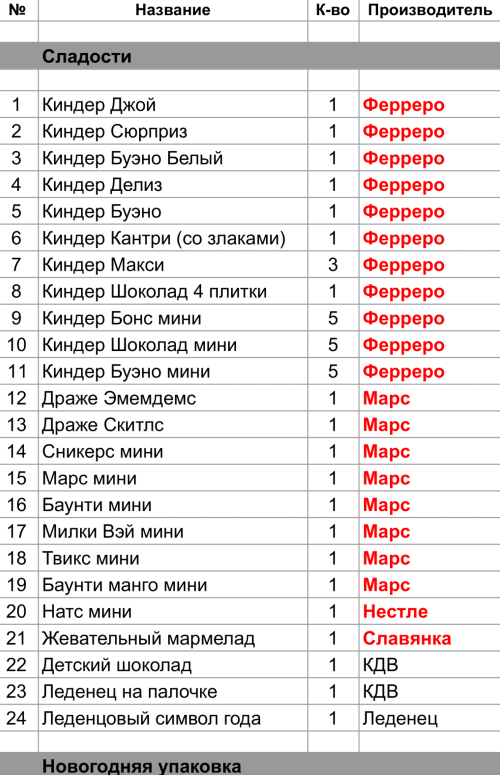 Опубликовано в Составы подарков